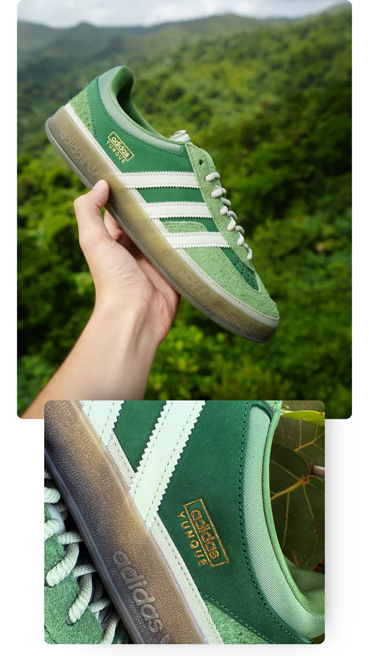 or 2025, clean kicks meet raw nature, and the Adidas x Bad Bunny "Yunque" is leading the charge deep into the wild. Drenched in lush forest greens and layered textures, this collab channels the untamed energy of El Yunque into one of the boldest takes on the terrace classic. Both a tribute and a statement, it's where reggaeton attitude meets rainforest soul.