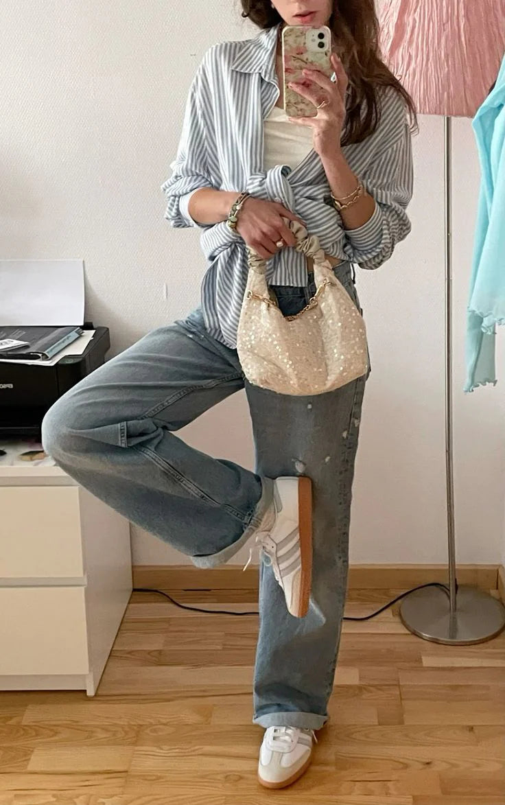 El Samba se ha convertido en una leyenda de la moda urbana, fusionando a la perfección sus raíces de los años 50 con la versatilidad moderna. La suela de goma con agarre te mantiene firme, mientras que la parte superior de primera calidad eleva cualquier atuendo. Ya sea que lo vistas con mezclilla o lo combines con un look a medida, esta versión del Samba está hecha para deslizarse del día a la noche con un estilo discreto. La icónica silueta del Samba se actualiza con una parte superior de cuero blanco nítido, realzada por sutiles acentos metálicos y superposiciones de gamuza de primera calidad. Las características clásicas como las tres rayas dentadas y el panel de la puntera en T honran la herencia histórica del zapato, mientras que la paleta limpia agrega un toque de sofisticación moderna. Versátil y atemporal, esta edición se mueve sin esfuerzo de tardes relajadas a salidas nocturnas elegantes.